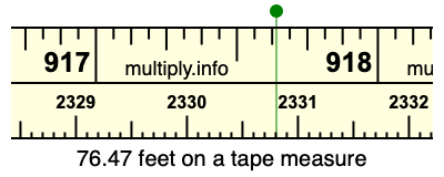76.47 feet times 12 equals 917.64 inches. Therefore, 76.47 feet is at the 917.64 inches place on the tape measure, as displayed below.