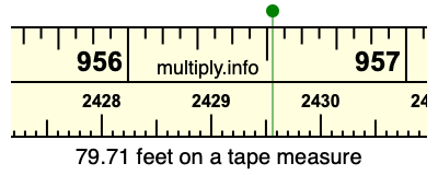 79.71 feet times 30.48 equals 2429.5608 centimeters. Therefore, 79.71 feet is also at the 2429.5608 centimeters place on the tape measure, as displayed above.