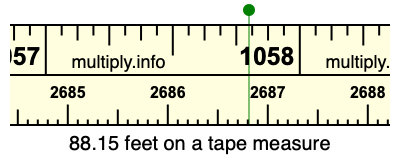 88.15 feet times 12 equals 1057.8 inches. Therefore, 88.15 feet is at the 1057.8 inches place on the tape measure, as displayed below.