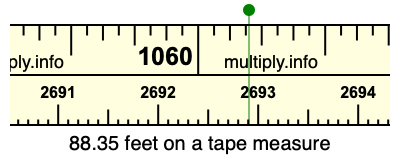 88.35 feet times 12 equals 1060.2 inches. Therefore, 88.35 feet is at the 1060.2 inches place on the tape measure, as displayed below.