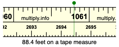 88.4 feet times 12 equals 1060.8 inches. Therefore, 88.4 feet is at the 1060.8 inches place on the tape measure, as displayed below.