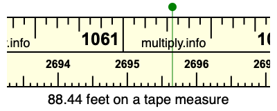 88.44 feet times 12 equals 1061.28 inches. Therefore, 88.44 feet is at the 1061.28 inches place on the tape measure, as displayed below.