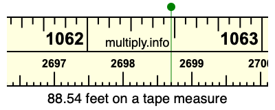 88.54 feet times 12 equals 1062.48 inches. Therefore, 88.54 feet is at the 1062.48 inches place on the tape measure, as displayed below.