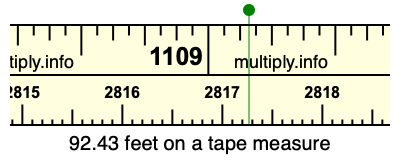 92.43 feet times 12 equals 1109.16 inches. Therefore, 92.43 feet is at the 1109.16 inches place on the tape measure, as displayed below.