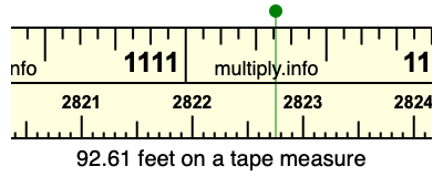 92.61 feet times 30.48 equals 2822.7528 centimeters. Therefore, 92.61 feet is also at the 2822.7528 centimeters place on the tape measure, as displayed above.
