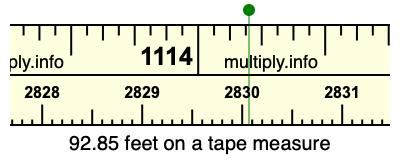 92.85 feet times 30.48 equals 2830.068 centimeters. Therefore, 92.85 feet is also at the 2830.068 centimeters place on the tape measure, as displayed above.