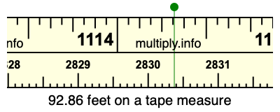 92.86 feet times 30.48 equals 2830.3728 centimeters. Therefore, 92.86 feet is also at the 2830.3728 centimeters place on the tape measure, as displayed above.
