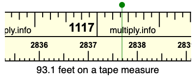 93.1 feet times 12 equals 1117.2 inches. Therefore, 93.1 feet is at the 1117.2 inches place on the tape measure, as displayed below.