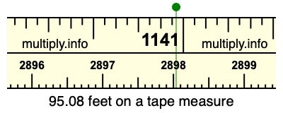 95.08 feet times 30.48 equals 2898.0384 centimeters. Therefore, 95.08 feet is also at the 2898.0384 centimeters place on the tape measure, as displayed above.