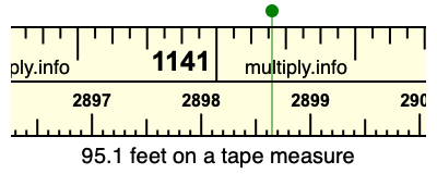 95.1 feet times 30.48 equals 2898.648 centimeters. Therefore, 95.1 feet is also at the 2898.648 centimeters place on the tape measure, as displayed above.