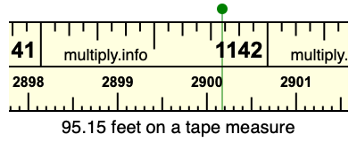 95.15 feet times 30.48 equals 2900.172 centimeters. Therefore, 95.15 feet is also at the 2900.172 centimeters place on the tape measure, as displayed above.