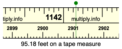 95.18 feet times 12 equals 1142.16 inches. Therefore, 95.18 feet is at the 1142.16 inches place on the tape measure, as displayed below.