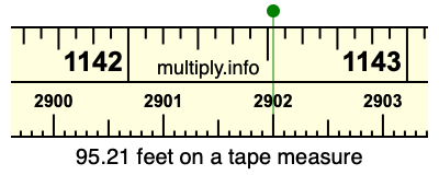 95.21 feet times 30.48 equals 2902.0008 centimeters. Therefore, 95.21 feet is also at the 2902.0008 centimeters place on the tape measure, as displayed above.