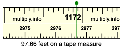 97.66 feet times 12 equals 1171.92 inches. Therefore, 97.66 feet is at the 1171.92 inches place on the tape measure, as displayed below.