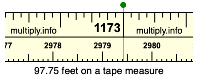 97.75 feet times 12 equals 1173 inches. Therefore, 97.75 feet is at the 1173 inches place on the tape measure, as displayed below.
