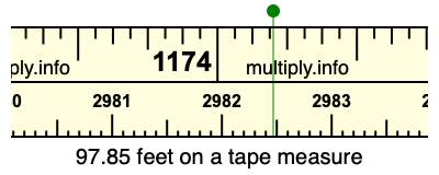 97.85 feet times 12 equals 1174.2 inches. Therefore, 97.85 feet is at the 1174.2 inches place on the tape measure, as displayed below.