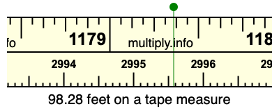 98.28 feet times 12 equals 1179.36 inches. Therefore, 98.28 feet is at the 1179.36 inches place on the tape measure, as displayed below.
