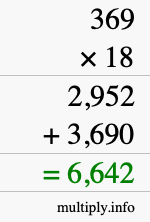 As you can see from the illustration above, the answer to 369 times 18 is the green number in the bottom row. The answer is 6,642.