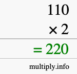 As you can see from the illustration above, the answer to 110 times 2 is the green number in the bottom row. The answer is 220.
