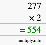 As you can see from the illustration above, the answer to 277 times 2 is the green number in the bottom row. The answer is 554.