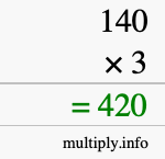 Then we multiply 3 with each digit of 140, and write the products in the next row, from right to left. (If the product is greater than 9, carry the tens digit to the next column.)