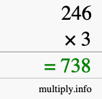 As you can see from the illustration above, the answer to 246 times 3 is the green number in the bottom row. The answer is 738.