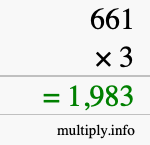 As you can see from the illustration above, the answer to 661 times 3 is the green number in the bottom row. The answer is 1,983.
