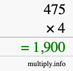 As you can see from the illustration above, the answer to 475 times 4 is the green number in the bottom row. The answer is 1,900.
