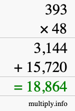 As you can see from the illustration above, the answer to 393 times 48 is the green number in the bottom row. The answer is 18,864.