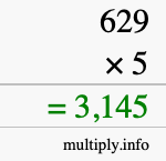 As you can see from the illustration above, the answer to 629 times 5 is the green number in the bottom row. The answer is 3,145.