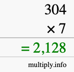 As you can see from the illustration above, the answer to 304 times 7 is the green number in the bottom row. The answer is 2,128.