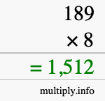 As you can see from the illustration above, the answer to 189 times 8 is the green number in the bottom row. The answer is 1,512.
