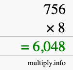Here you will learn how to calculate 756 multiplied by 8 using long multiplication. In other words, learn how to use long multiplication to find the answer to 756 times 8. We will first give you step-by-step instructions, and then we will illustrate with an image what we did.
