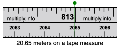 20.65 meters times 39.3701 equals 812.992565 inches. Therefore, 20.65 meters is also at the 812.992565 inches place on the tape measure, as displayed above.