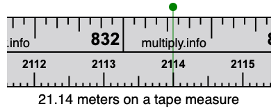 Therefore, to locate 21.14 meters on a tape measure, you can either convert 21.14 meters to centimeters or to inches.