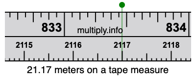 Therefore, to locate 21.17 meters on a tape measure, you can either convert 21.17 meters to centimeters or to inches.