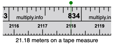 Therefore, to locate 21.18 meters on a tape measure, you can either convert 21.18 meters to centimeters or to inches.