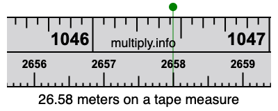 Therefore, to locate 26.58 meters on a tape measure, you can either convert 26.58 meters to centimeters or to inches.