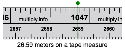 Therefore, to locate 26.59 meters on a tape measure, you can either convert 26.59 meters to centimeters or to inches.