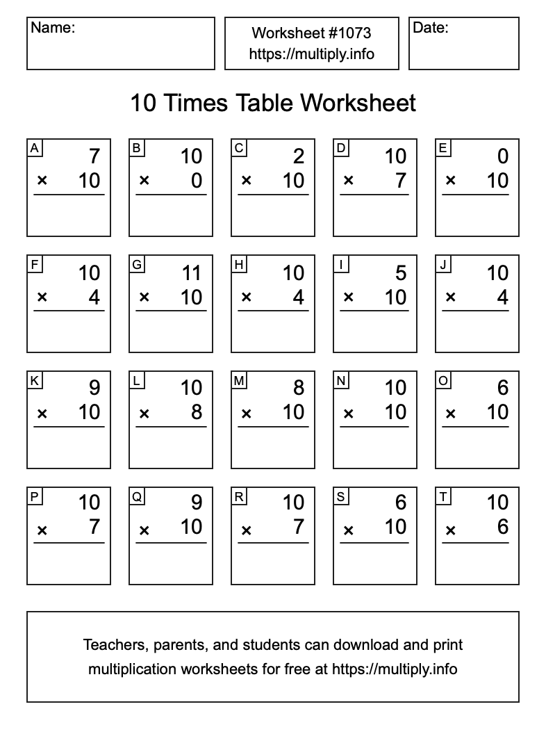 10 Times Table Worksheet #1074