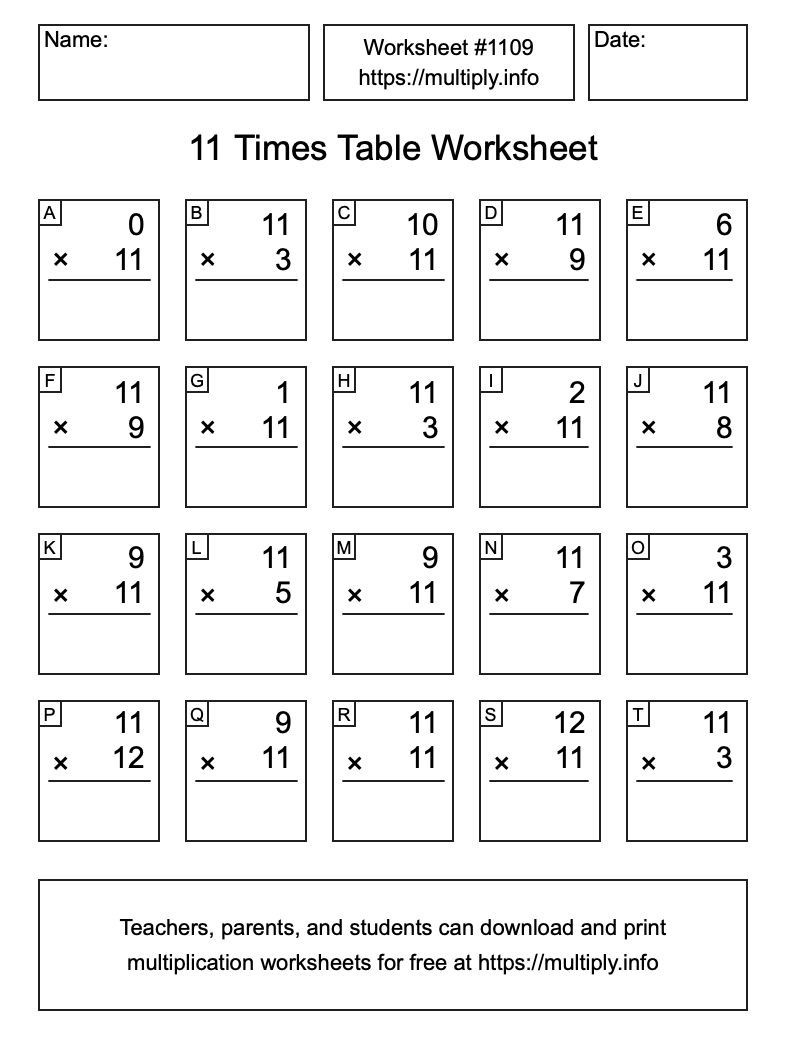 11 Times Table Worksheet #1110