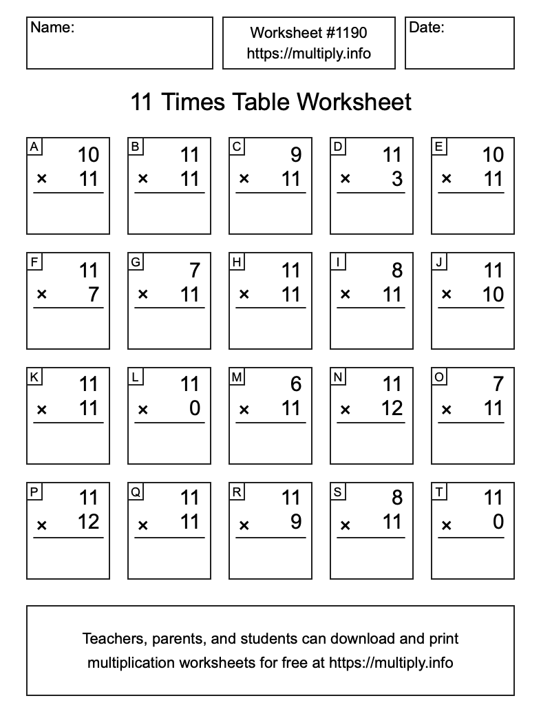 11 Times Table Worksheet #1191