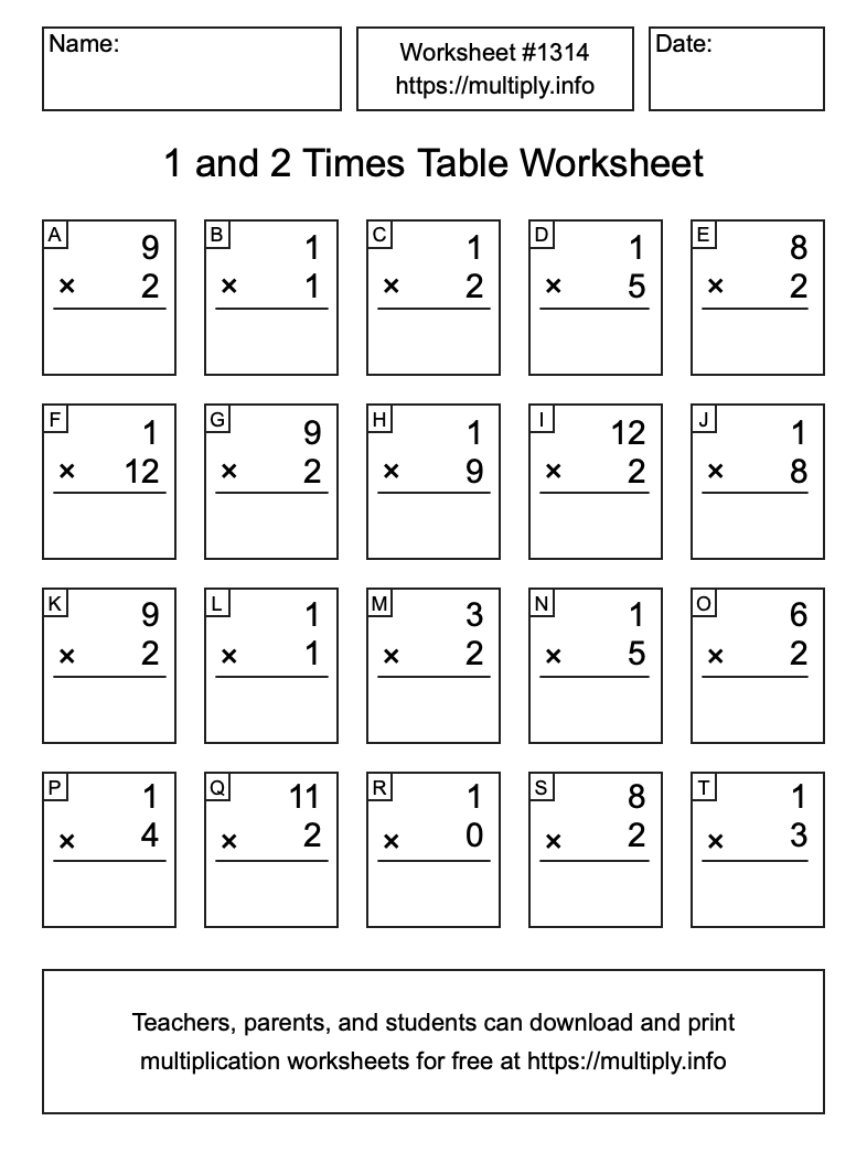 1 and 2 Times Table Worksheet #1315