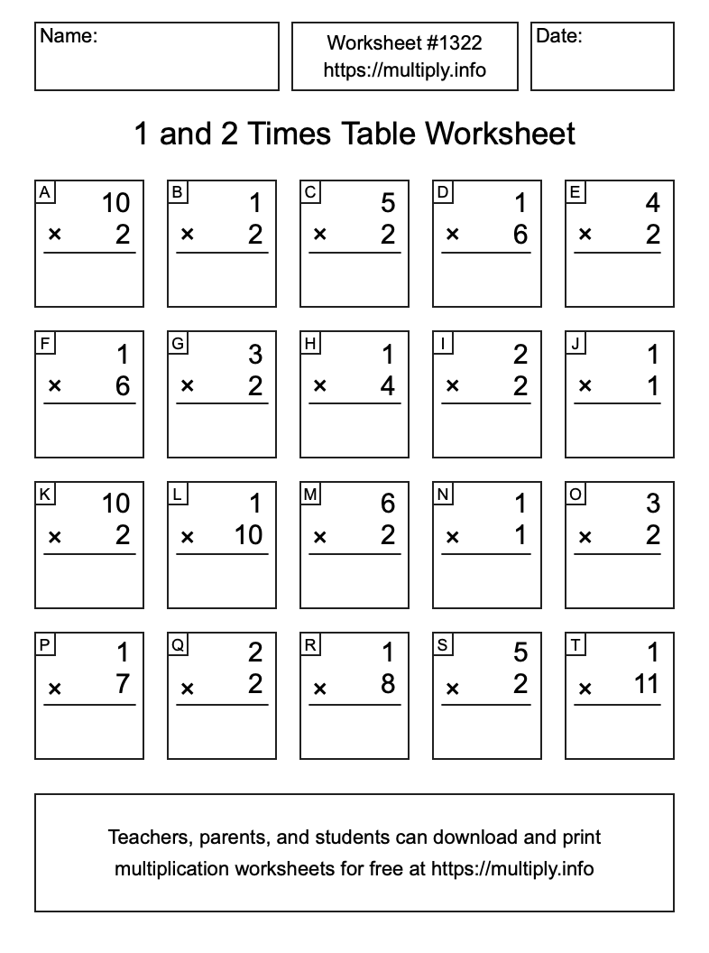1 and 2 Times Table Worksheet #1323