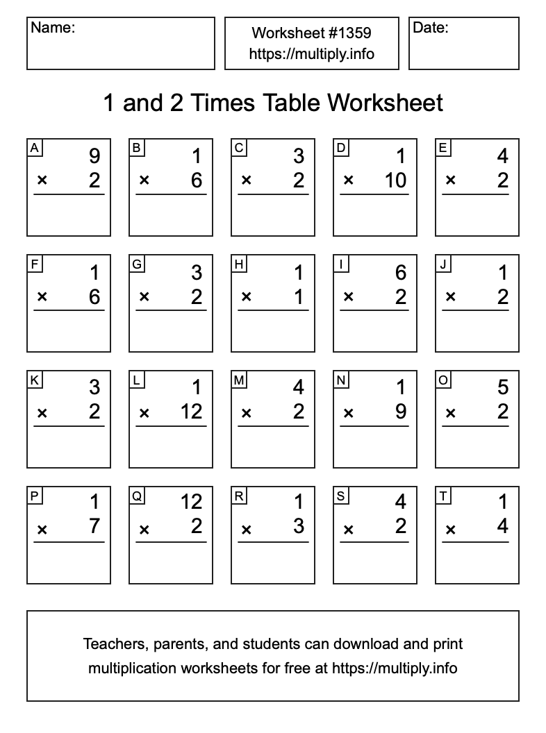 1 and 2 Times Table Worksheet #1360