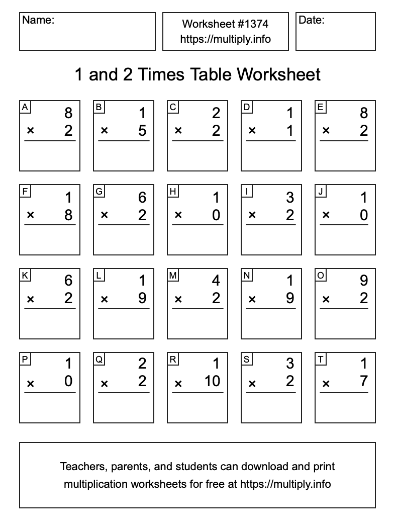 1 and 2 Times Table Worksheet #1375