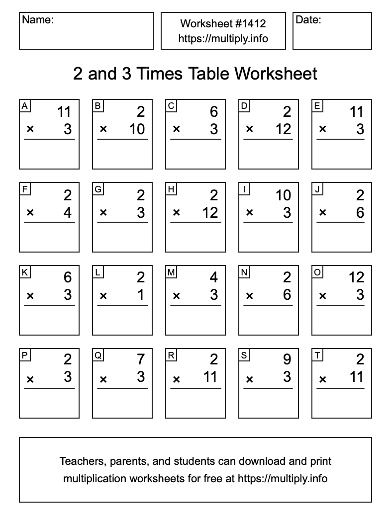 2 and 3 Times Table Worksheet #1413