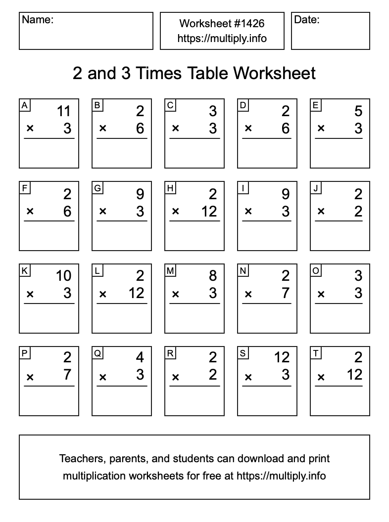 2 and 3 Times Table Worksheet #1427