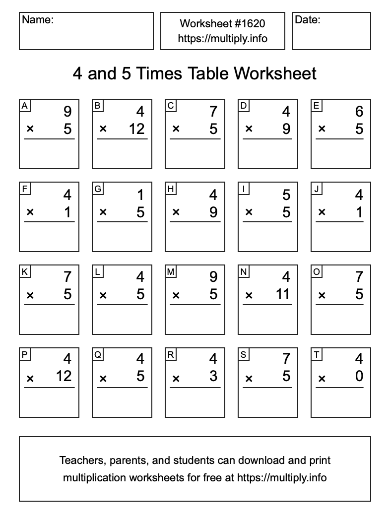 4 and 5 Times Table Worksheet #1621