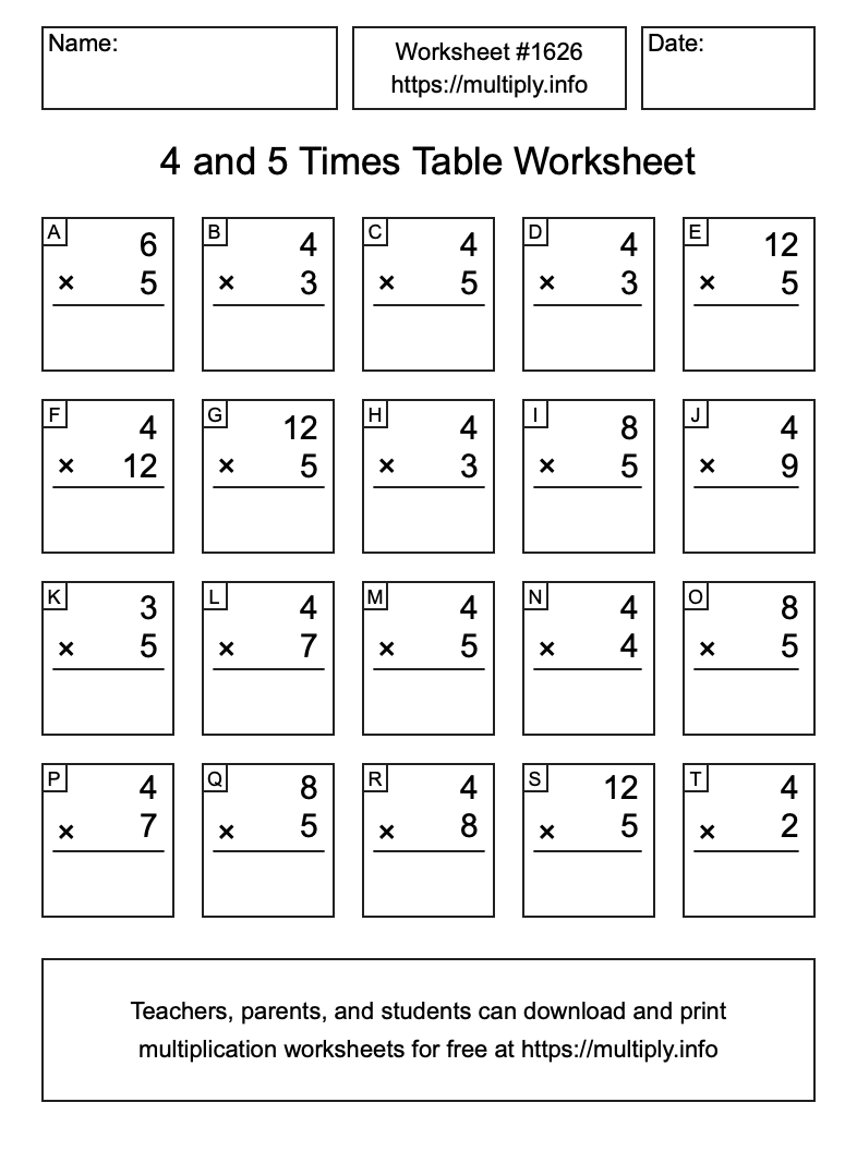 4 and 5 Times Table Worksheet #1627